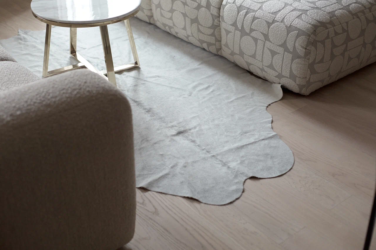 На полу — кварцпаркет из натурального дерева, дизайн Quartz Parquet Дуб Испанский 404 из коллекции Классик.